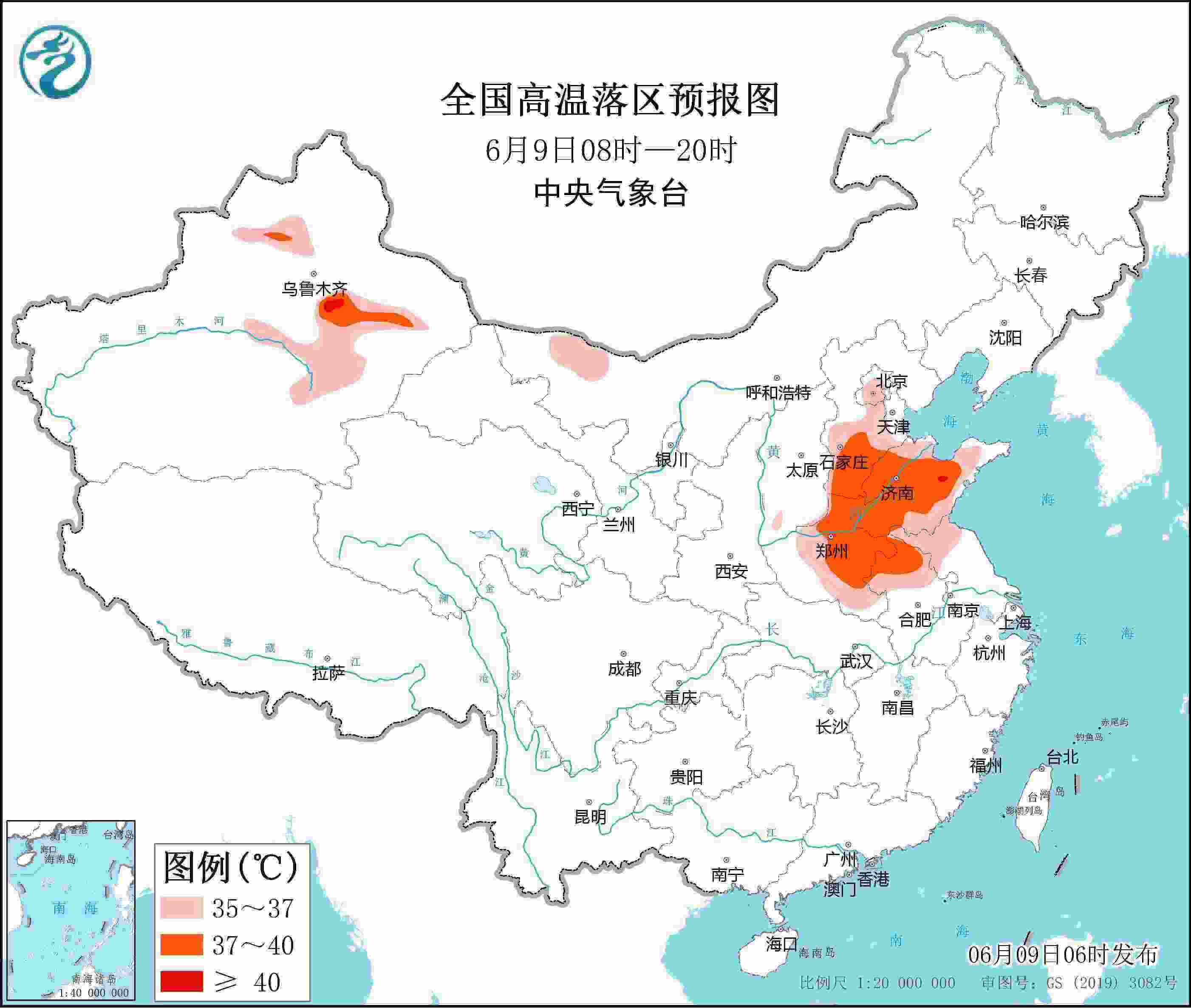 央視網消息:中央氣象臺6月9日06時繼續(xù)發(fā)布高溫黃色預警。預計6月9日白天,內蒙古西部、新疆沿天山地區(qū)和南疆盆地、河北中南部、北京、天津西部和南部、山東大部、河南大部、安徽北部、江蘇北部等地有35~36℃高溫天氣,其中,新疆北疆沿天山地區(qū)和吐魯番盆地、河北南部、山東中西部、河南中東部、安徽北部等地部分地區(qū)最高氣溫37~39℃,局地可達40℃以上。