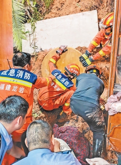 6月17日,消防人員在福建省龍巖市武平縣象洞鎮(zhèn)開(kāi)展救援。周楊東攝(新華社發(fā))