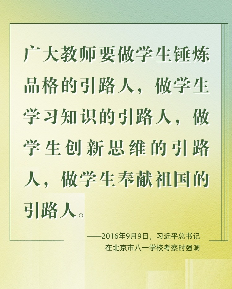 他們帶領(lǐng)學(xué)生前行,更新舊知、開掘新知、探索未知;他們肩負(fù)光榮使命,為黨育人、為國育才、為民育未來。守教育報(bào)國初心、擔(dān)立德樹人使命、圓民族復(fù)興之夢,建設(shè)社會主義現(xiàn)代化強(qiáng)國之路上,教育家精神自當(dāng)念茲在茲、代代傳承、光芒永綻。