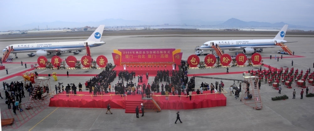 2006年,廈航作為新增廈門航點(diǎn)的唯一運(yùn)營航空公司,執(zhí)行了廈門-臺北、廈門-高雄航線的包機(jī)任務(wù)。這是首航儀式現(xiàn)場。