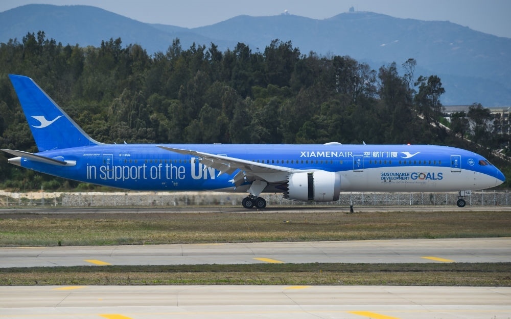 2018年3月21日,聯(lián)合國特殊涂裝飛機(jī)廈門航空“聯(lián)合夢想號”正式在福建福州長樂國際機(jī)場亮相。新華社記者 宋為偉 攝