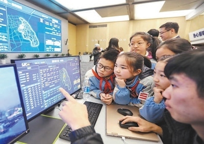 城市治理市民在浦東新區(qū)城市運(yùn)行綜合管理中心參觀(guān)。黃日閱攝(人民視覺(jué))