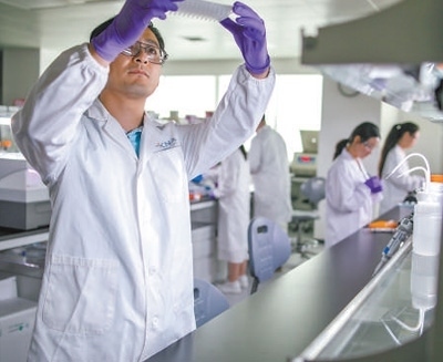 科技創(chuàng)新浦東新區(qū)生物醫(yī)藥創(chuàng)新企業(yè)的青年科學(xué)家正在研發(fā)新一代單克隆抗體。裴 工攝(人民視覺(jué))