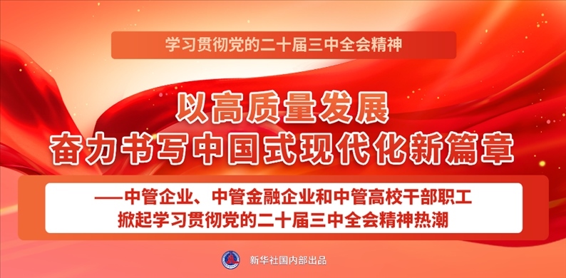 點擊標(biāo)題看詳情:以高質(zhì)量發(fā)展奮力書寫中國式現(xiàn)代化新篇章——中管企業(yè)、中管金融企業(yè)和中管高校干部職工掀起學(xué)習(xí)貫徹黨的二十屆三中全會精神熱潮