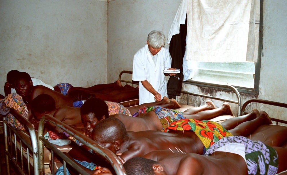 1995年,中國(guó)醫(yī)生在多哥卡拉地區(qū)醫(yī)院門(mén)診部為患者進(jìn)行針灸治療。