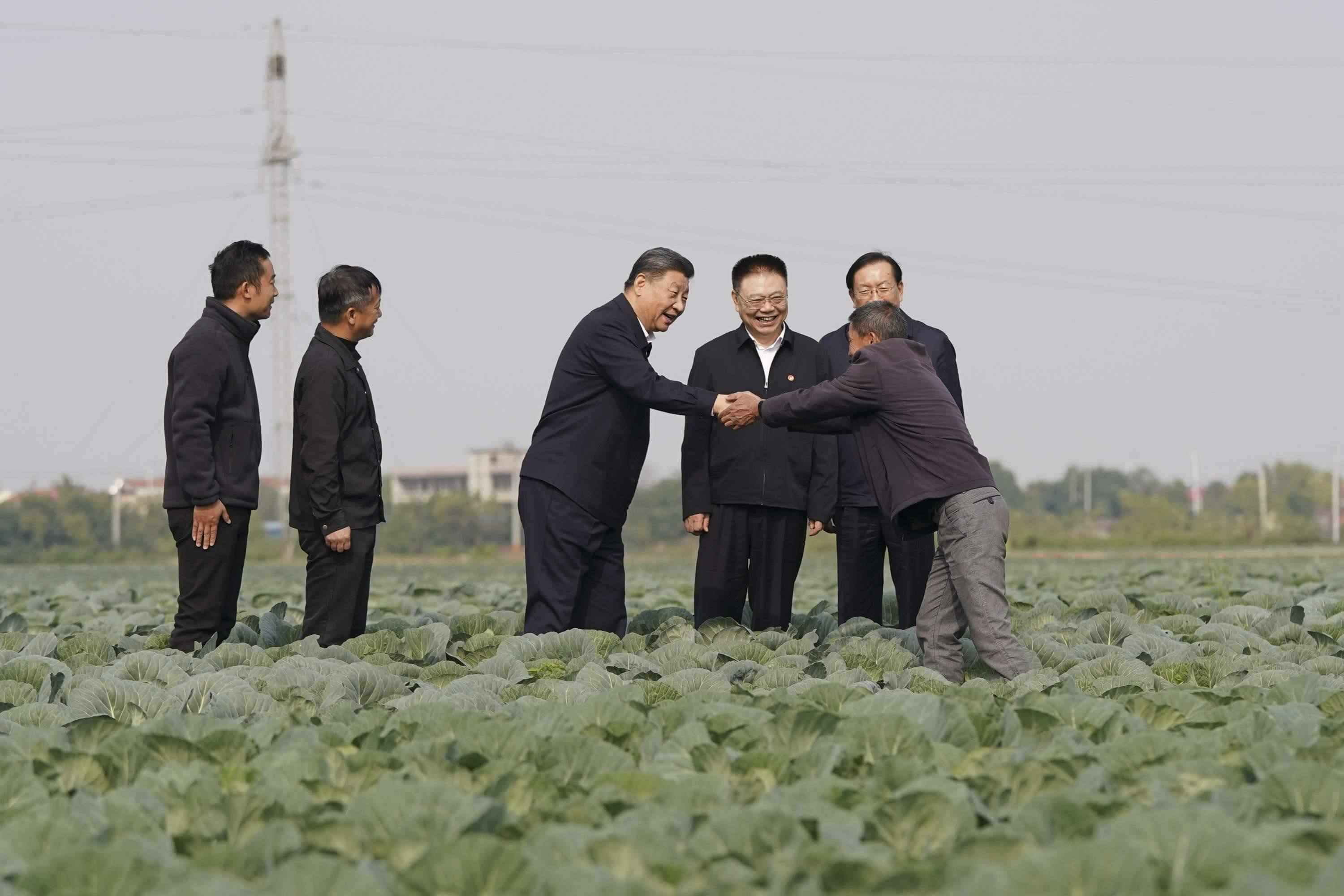 2024年11月5日,湖北省嘉魚(yú)縣潘家灣鎮(zhèn)。習(xí)近平總書記來(lái)到這里,了解推進(jìn)鄉(xiāng)村全面振興情況。秋意漸濃,蔬菜長(zhǎng)廊一片郁郁蔥蔥,總書記微笑著同村民握手。又一張照片定格。