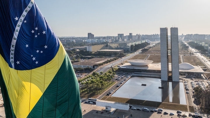 這是2024年7月16日在巴西首都巴西利亞拍攝的國會(huì)大廈(無人機(jī)照片)。新華社記者 王天聰 攝