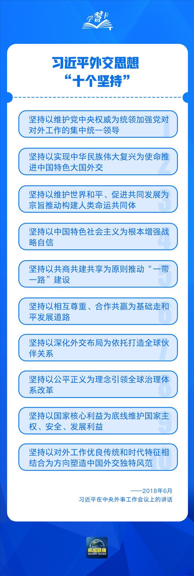 2018年6月召開的中央外事工作會議上,總書記進一步強調(diào),堅持以實現(xiàn)中華民族偉大復興為使命推進中國特色大國外交,會議確立了習近平外交思想的指導地位。