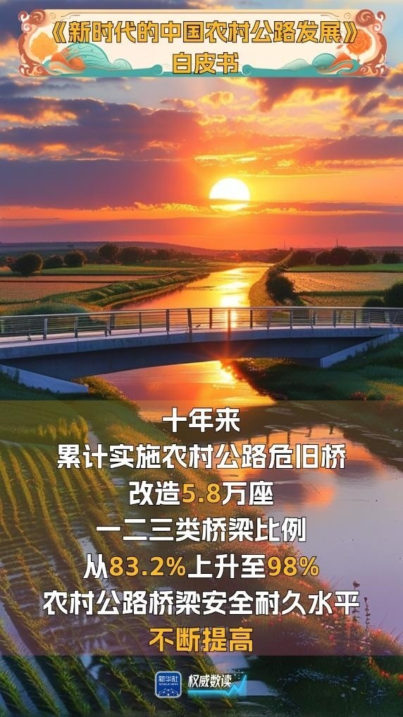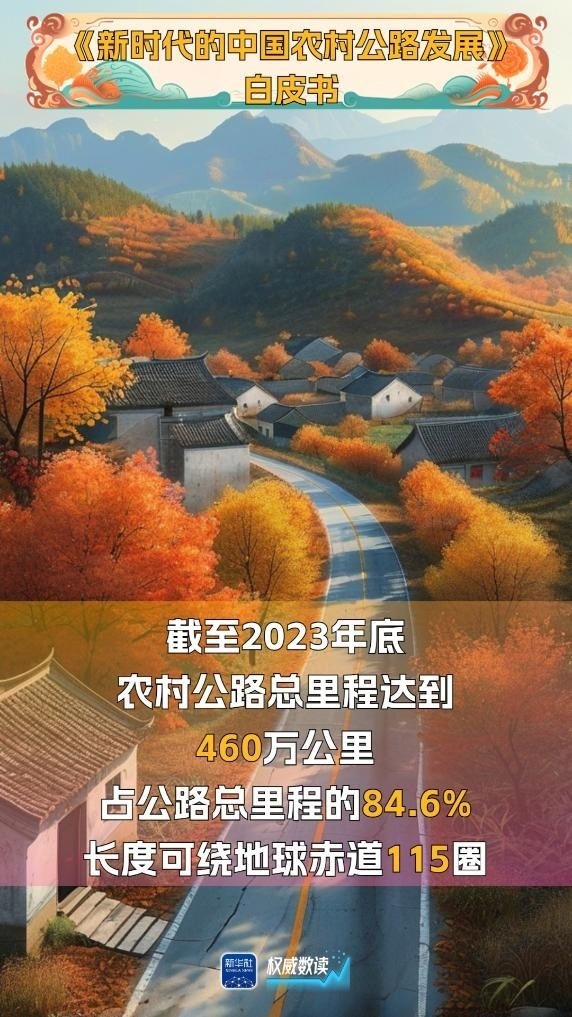 國(guó)務(wù)院新聞辦公室29日發(fā)布的《新時(shí)代的中國(guó)農(nóng)村公路發(fā)展》白皮書顯示,截至2023年底,我國(guó)農(nóng)村公路總里程增長(zhǎng)到460萬(wàn)公里,占公路總里程的84.6%,目前已形成了“外通內(nèi)聯(lián)、通村暢鄉(xiāng)、客車到村、安全便捷”的農(nóng)村交通運(yùn)輸網(wǎng)絡(luò),帶動(dòng)農(nóng)村地區(qū)整體面貌發(fā)生了巨大變化。