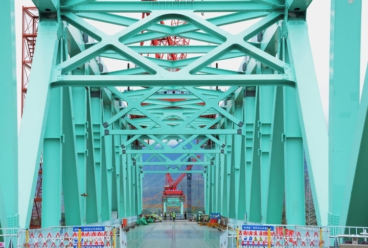 2024年9月5日,工人在川青鐵路重點(diǎn)工程尖扎黃河特大橋現(xiàn)場(chǎng)施工。川青鐵路是我國(guó)“八縱八橫”高速鐵路縱向主通道蘭(西)廣通道的重要組成部分。新華社記者 王浡 攝