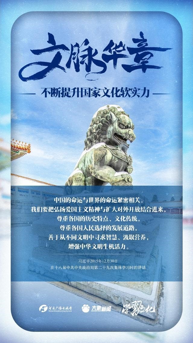 文化軟實力集中體現(xiàn)了一個國家基于文化而具有的凝聚力和生命力,以及由此產(chǎn)生的吸引力和影響力。黨的十八大以來,習近平總書記站在黨和國家事業(yè)發(fā)展全局的戰(zhàn)略高度,就提高國家文化軟實力闡發(fā)了一系列重要論述。我們一起學習。
