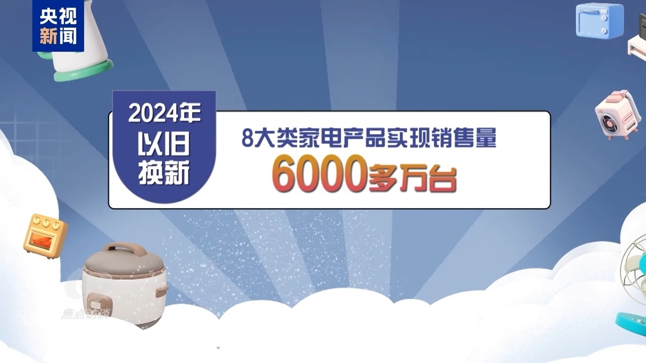 好政策帶來(lái)了好成效。以家電市場(chǎng)為例,2024年,中央加力支持以舊換新8大類家電產(chǎn)品實(shí)現(xiàn)銷售量6000多萬(wàn)臺(tái),直接拉動(dòng)消費(fèi)超2600億元。