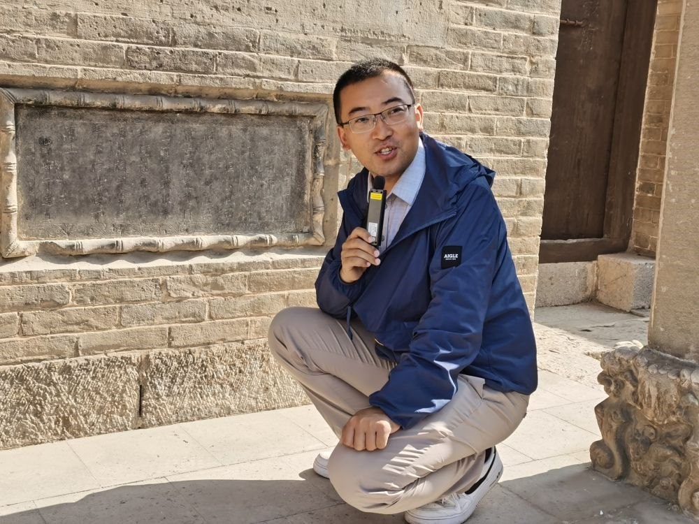 從“古建粉”到從業(yè)者,“80后”楊杰用自己的創(chuàng)業(yè)經(jīng)歷,展現(xiàn)出傳統(tǒng)文化在新時(shí)代的實(shí)踐可能。他創(chuàng)立的晉行記研學(xué)中心,聘請專業(yè)人士深入講解,為喜愛古建的游客提供“沉浸式”研學(xué)體驗(yàn)。這是2023年5月20日,楊杰帶領(lǐng)游客在山西長治參觀淳化寺古跡。
