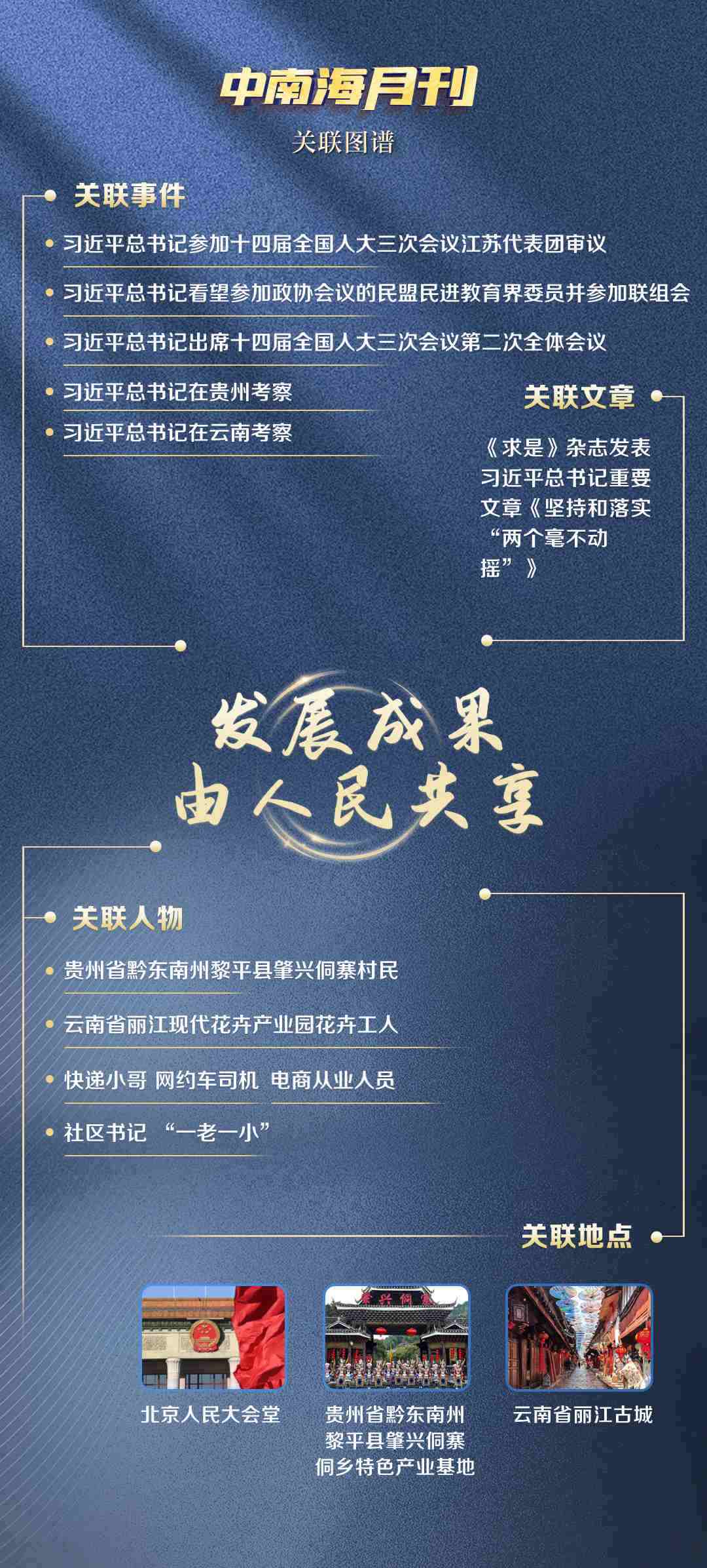觀察央視網(wǎng)I學習數(shù)據(jù)庫生成的3月關(guān)聯(lián)圖譜,無論是對高質(zhì)量發(fā)展的謀篇布局,還是推動優(yōu)秀傳統(tǒng)文化守正創(chuàng)新,“發(fā)展成果由人民共享”的理念始終貫穿其中,“致廣大而盡精微”的治理方法也清晰可見。