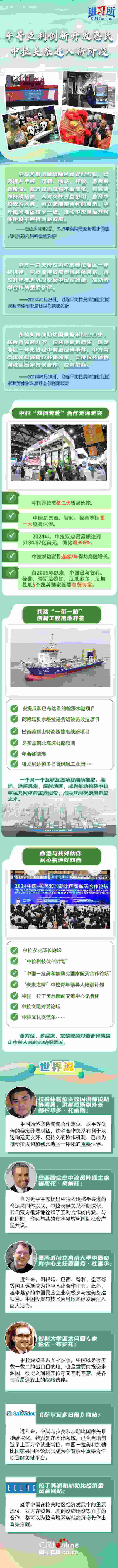 命運與共,大道同行。2014年,習(xí)近平主席首次提出構(gòu)建中拉命運共同體,為新時代中拉關(guān)系發(fā)展指明了方向,得到拉美和加勒比國家積極響應(yīng)。近年來,從就“引領(lǐng)中拉友好關(guān)系駛?cè)胄潞匠獭碧岢鼋ㄗh,到提出新時代中拉關(guān)系內(nèi)涵,習(xí)近平主席始終著眼于中國與拉美和加勒比國家命運與共的未來,推動中拉關(guān)系穩(wěn)步前進。拉美地區(qū)媒體及政學(xué)界人士表示,中國始終堅持南南合作定位,以中拉命運共同體理念為指引,持續(xù)推動雙邊關(guān)系升級,已成為推動拉美和加勒比地區(qū)一體化的重要伙伴。