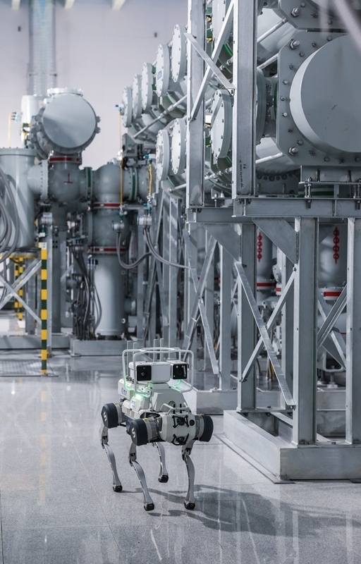 6月24日,機器狗在舟山望海(金塘)220千伏輸變電工程的變電站GIS室內巡查。