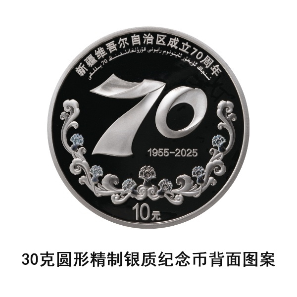中國人民銀行定于2025年9月19日發(fā)行新疆維吾爾自治區(qū)成立70周年金銀紀(jì)念幣一套。該套金銀紀(jì)念幣共2枚,其中金質(zhì)紀(jì)念幣1枚,銀質(zhì)紀(jì)念幣1枚,均為中華人民共和國法定貨幣。