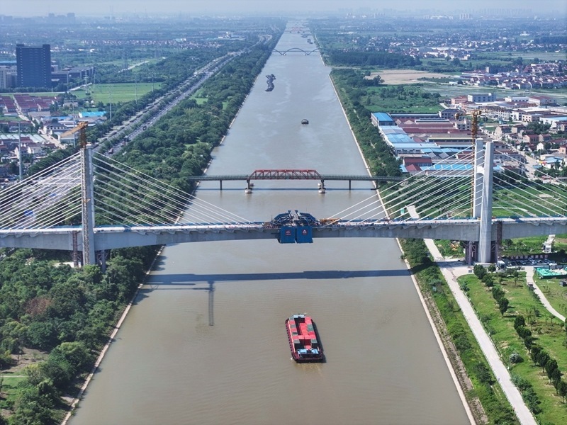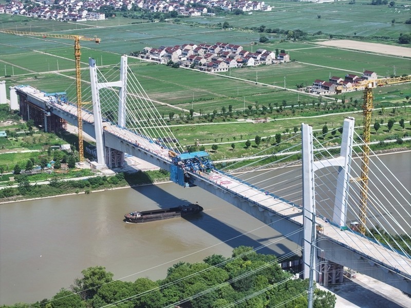 滬渝蓉高鐵通泰揚(yáng)特大橋全長(zhǎng)172.9公里,跨越江蘇南通、泰州、揚(yáng)州三市。此次合龍的跨引江河斜拉橋全長(zhǎng)522.3米,主跨220米,是滬渝蓉高鐵滬寧段首個(gè)實(shí)現(xiàn)合龍的斜拉橋。作為全線關(guān)鍵控制性節(jié)點(diǎn)工程,該橋的順利合龍為滬渝蓉高鐵通泰揚(yáng)特大橋后續(xù)鋪軌及全線貫通創(chuàng)造了有利條件。