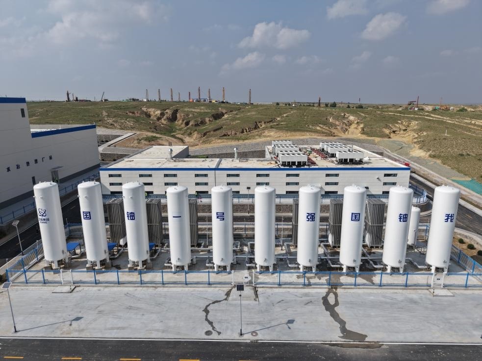 圖為“國(guó)鈾一號(hào)”示范工程地浸鈾礦山氧氣和二氧化碳?xì)怏w罐。(中核集團(tuán)供圖)