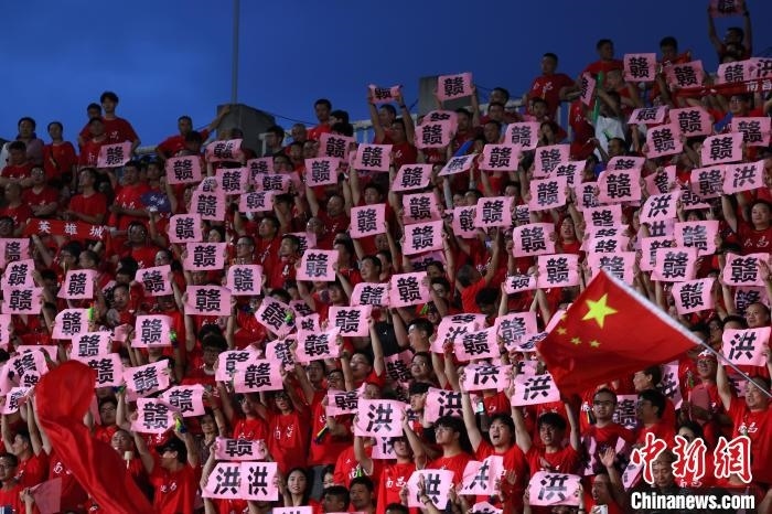 7月12日晚,“贛超”揭幕戰(zhàn)由東道主南昌隊(duì)迎戰(zhàn)景德鎮(zhèn)隊(duì),吸引近1.5萬名觀眾涌入南昌八一體育場(chǎng)觀賽。中新社記者 劉占昆 攝