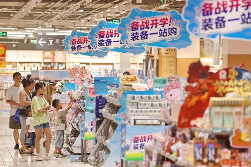 8月24日,在浙江省嘉興市南湖區(qū)一家商場(chǎng),家長(zhǎng)帶著孩子選購學(xué)習(xí)用品。