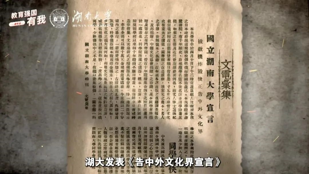 習(xí)近平總書記強(qiáng)調(diào),廣大青少年生逢其時(shí),要賡續(xù)紅色血脈,樹立強(qiáng)國有我的遠(yuǎn)大志向,做堂堂正正、光榮自豪的中國人,勇?lián)褡鍙?fù)興的時(shí)代大任。2025年是中國人民抗日戰(zhàn)爭(zhēng)暨世界反法西斯戰(zhàn)爭(zhēng)勝利80周年,教育部政務(wù)新媒體推出“教育強(qiáng)國,有我!”網(wǎng)絡(luò)主題宣傳活動(dòng)之“青年說·傳承篇”系列,挖掘高校里的紅色記憶,展現(xiàn)青年師生的時(shí)代擔(dān)當(dāng)。今天,跟教育小微通過1個(gè)微視頻和1個(gè)故事,共同回顧湖南大學(xué)師生英勇抗戰(zhàn)的烽火歲月——