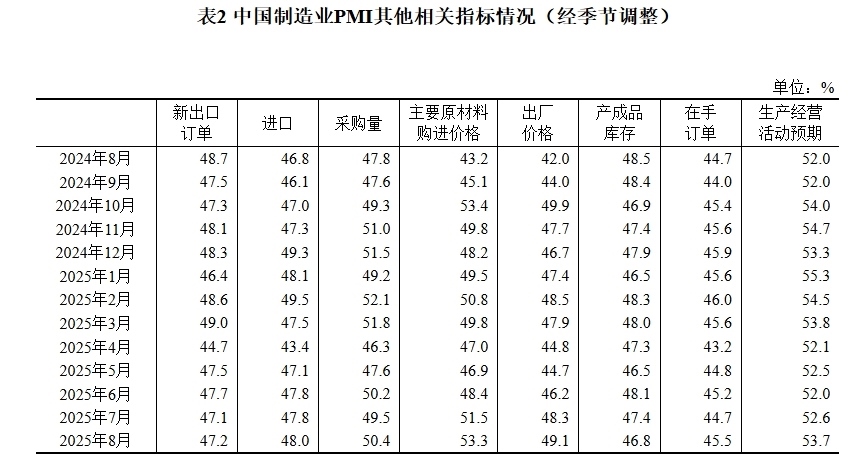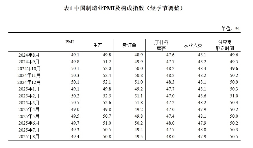 據(jù)國(guó)家統(tǒng)計(jì)局網(wǎng)站消息,國(guó)家統(tǒng)計(jì)局8月31日發(fā)布2025年8月中國(guó)采購(gòu)經(jīng)理指數(shù)運(yùn)行情況。