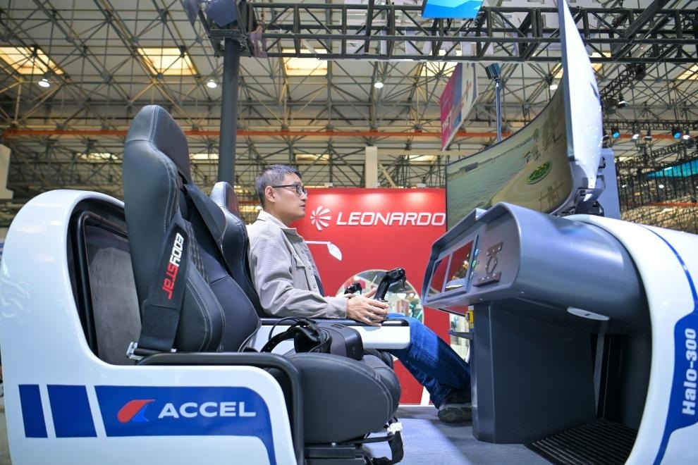 模擬機上,屏幕上正顯示GIS系統(tǒng)和MR技術(shù)生成的虛擬現(xiàn)實場景。隨著機器開啟,座位搖晃、手柄震動,伴隨飛機起降、顛簸等過程中的失重感,記者體驗了一把“開飛機”?!拔覀冮_發(fā)出虛擬飛行訓練視景系統(tǒng),可以針對不同城市以及特殊場景搭建對應環(huán)境,支持低空環(huán)境飛行訓練?!北本┵愃倪_科技股份有限公司工作人員劉正晨說。