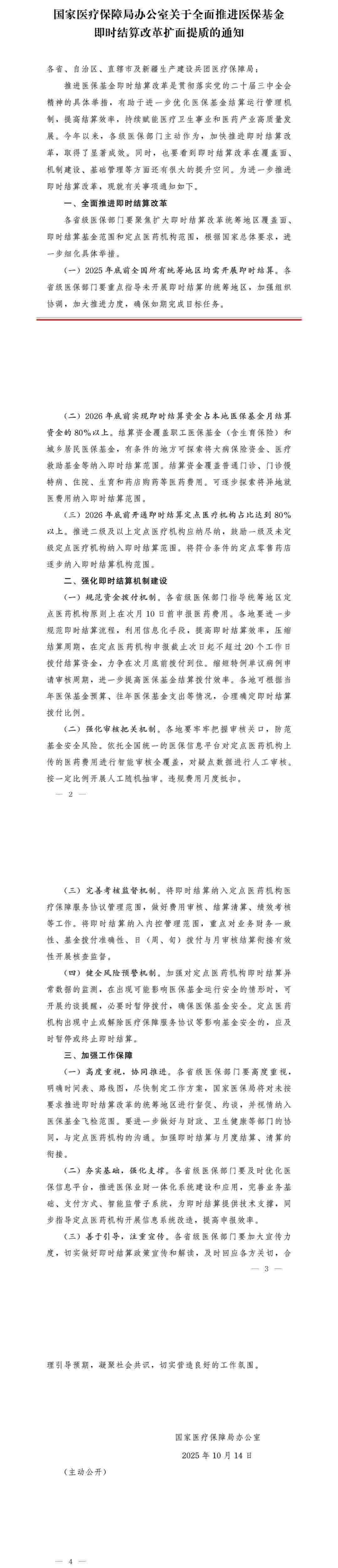 據(jù)國家醫(yī)保局官方微信消息,國家醫(yī)療保障局辦公室發(fā)布《關(guān)于全面推進醫(yī)?;鸺磿r結(jié)算改革擴面提質(zhì)的通知》。全文如下: