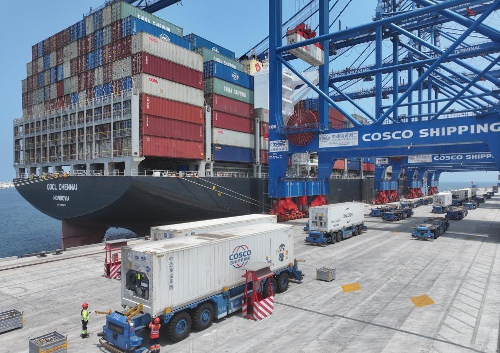 △秘魯錢凱港,智能集卡裝載到港集裝箱。