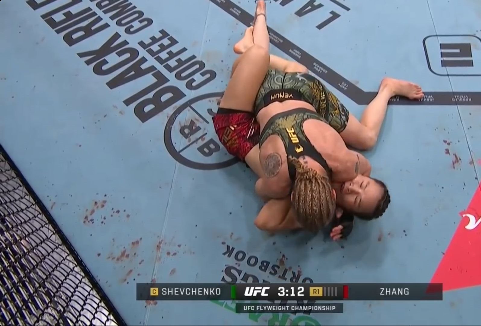 比賽中,兩人長時間在地面上纏斗,而舍甫琴科是明顯占優(yōu)的一方。