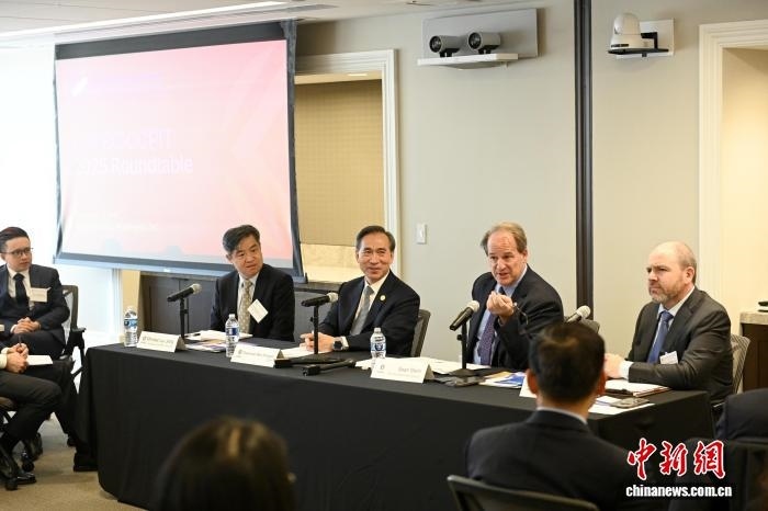 當地時間12月3日,華盛頓,中國貿促會組織中國企業(yè)家代表團與美中貿易全國委員會及其會員企業(yè)交流座談。中新社記者 陳孟統(tǒng) 攝