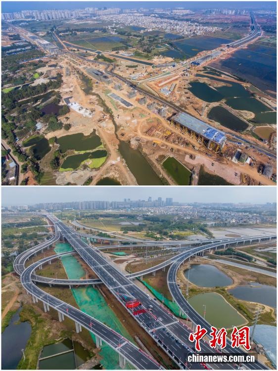 2025年12月18日,海南自由貿(mào)易港正式啟動(dòng)全島封關(guān)。近年來(lái),海南自貿(mào)港建設(shè)在利好政策帶動(dòng)下不斷刷新“自貿(mào)港速度”,一個(gè)個(gè)重大項(xiàng)目、重點(diǎn)園區(qū)拔地而起,直觀呈現(xiàn)海南自貿(mào)港的蓬勃生機(jī)。這里正成為中國(guó)對(duì)外開(kāi)放的新前沿、互利合作的新熱土和推動(dòng)經(jīng)濟(jì)全球化的新引擎。上資料圖為2021年2月6日正在建設(shè)中的G15沈海高速公路海口段項(xiàng)目海秀互通,下資料圖為2022年12月28日G15沈海高速公路??诙谓ǔ赏ㄜ嚒#ㄆ窗鎴D,無(wú)人機(jī)照片)
