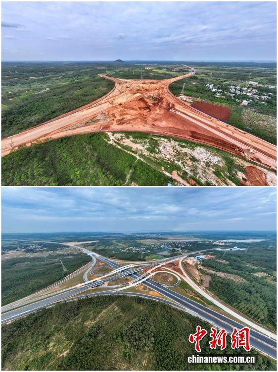 2025年12月18日,海南自由貿(mào)易港正式啟動(dòng)全島封關(guān)。近年來(lái),海南自貿(mào)港建設(shè)在利好政策帶動(dòng)下不斷刷新“自貿(mào)港速度”,一個(gè)個(gè)重大項(xiàng)目、重點(diǎn)園區(qū)拔地而起,直觀呈現(xiàn)海南自貿(mào)港的蓬勃生機(jī)。這里正成為中國(guó)對(duì)外開(kāi)放的新前沿、互利合作的新熱土和推動(dòng)經(jīng)濟(jì)全球化的新引擎。上資料圖為2024年10月23日建設(shè)中的海南首條雙向八車道高速公路——海南洋浦疏港高速公路SG01標(biāo)段光村互通,下資料圖為2025年12月2日正進(jìn)行瀝青攤鋪?zhàn)鳂I(yè)的海南洋浦疏港高速公路光村互通。(拼版圖,無(wú)人機(jī)照片)