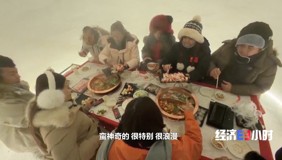游客們?cè)诒煅┑乩锲弦怀蹋簧习?,就奔向特色雪屋。在這里享用熱氣騰騰的火鍋,體驗(yàn)“冰火兩重天”的樂(lè)趣。