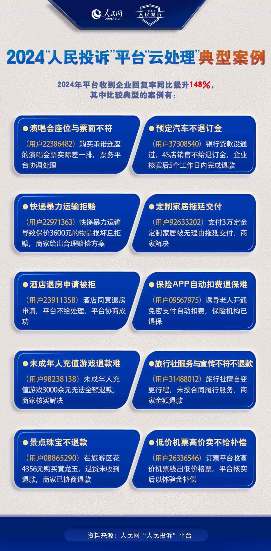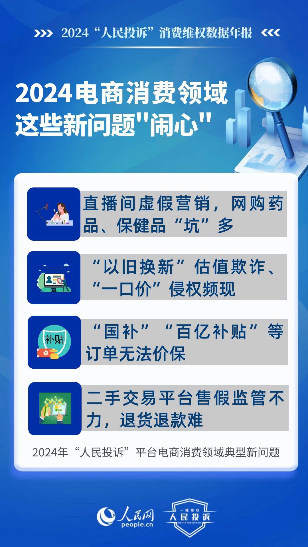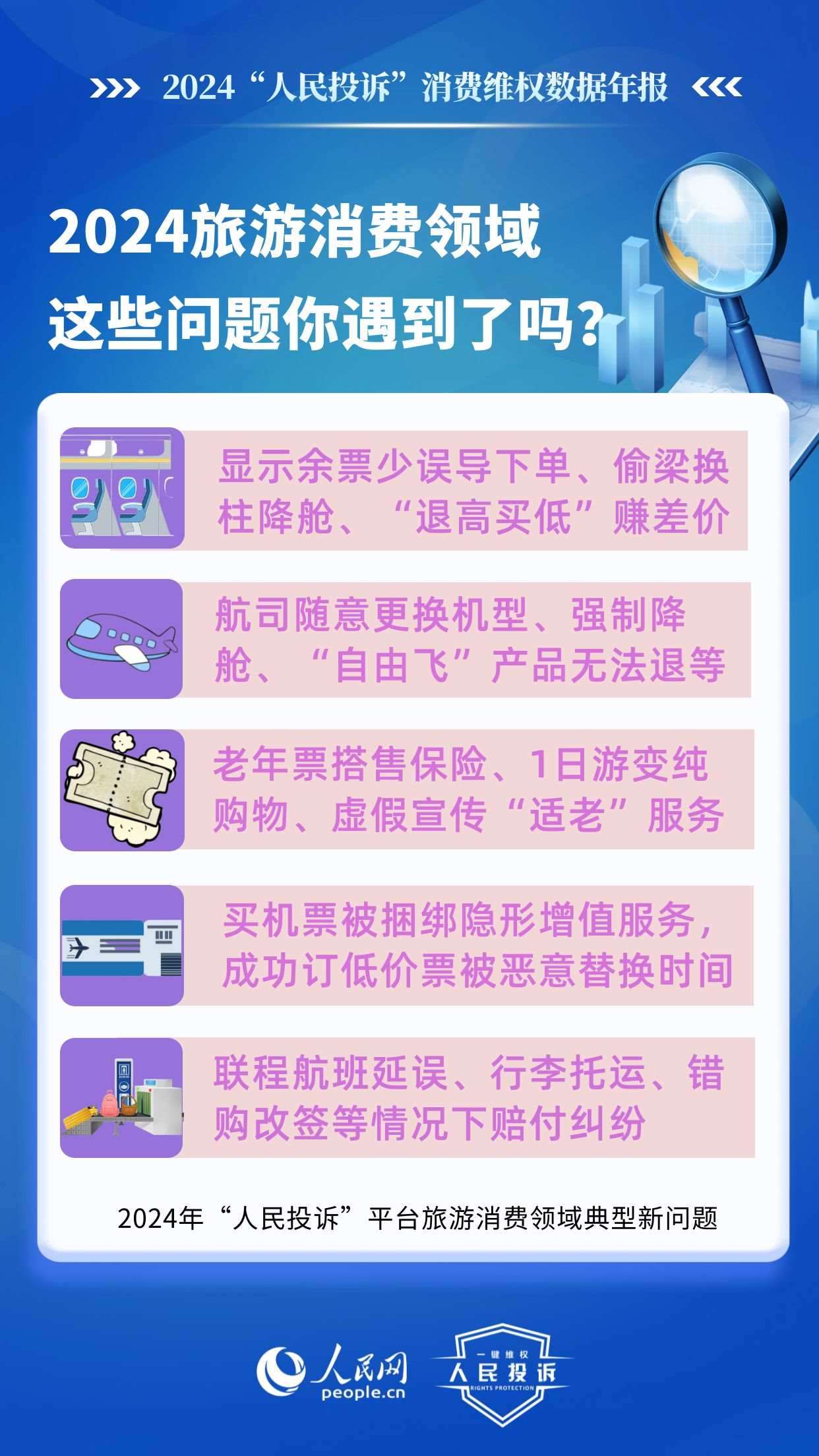 2024年,旅游消費(fèi)持續(xù)火爆,以舊換新“換”出消費(fèi)新活力,直播電商“品質(zhì)化”轉(zhuǎn)型,新能源汽車購(gòu)銷兩旺……在消費(fèi)市場(chǎng)熱力持續(xù)提升的背景下,旅游產(chǎn)品退訂難,電商促銷虛假價(jià)保,直播間營(yíng)銷違規(guī),車險(xiǎn)車貸服務(wù)欺詐,AI培訓(xùn)貨不對(duì)板等消費(fèi)侵權(quán)問題引發(fā)廣泛關(guān)注。“人民投訴”發(fā)布年報(bào)帶您回顧這一年來,平臺(tái)消費(fèi)維權(quán)熱點(diǎn)和入駐企業(yè)積極處理糾紛的舉措。