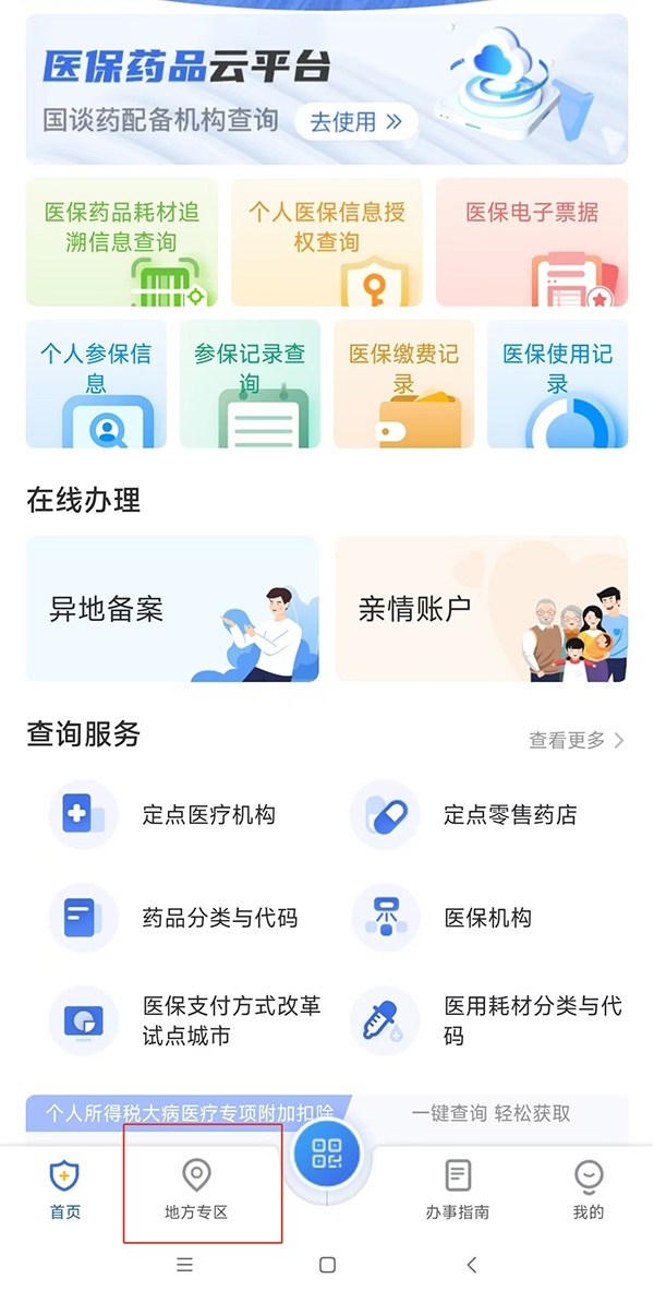 第一步:以北京為例,打開“國家醫(yī)保服務平臺”App,點擊進入下方“地方專區(qū)”,選擇“北京市”。