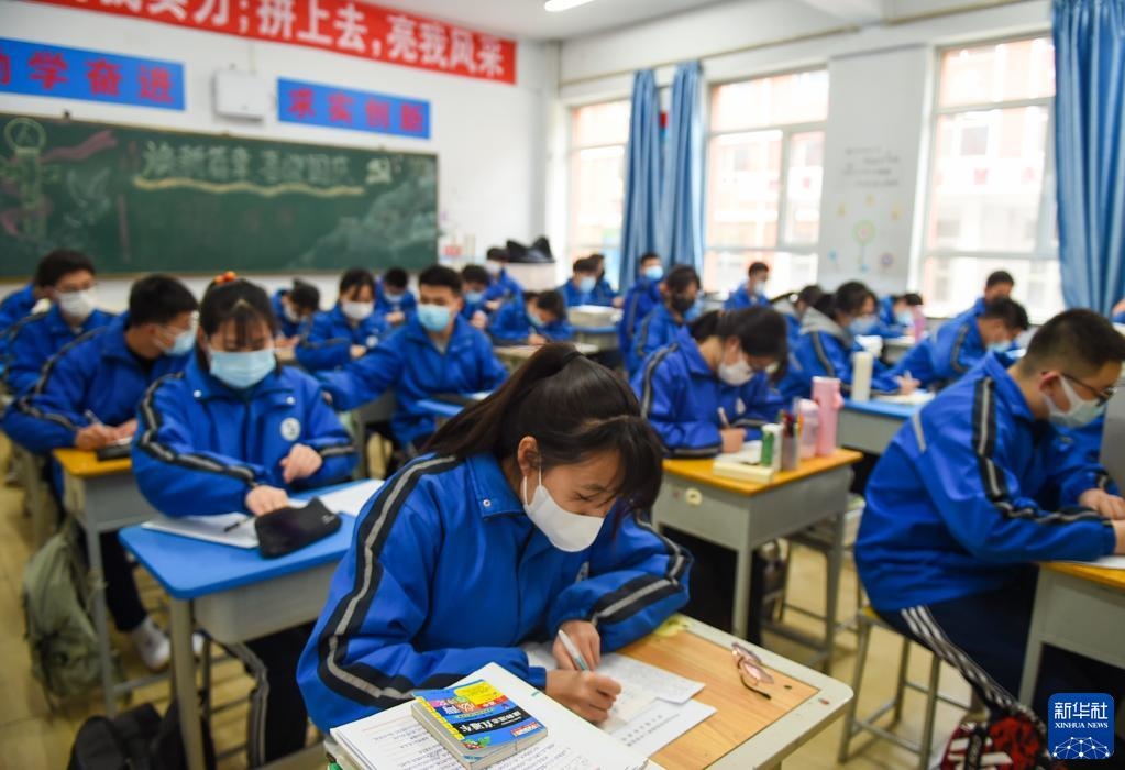 4月1日,呼和浩特市鐵路第二中學(xué)高三年級學(xué)生在教室里上課。