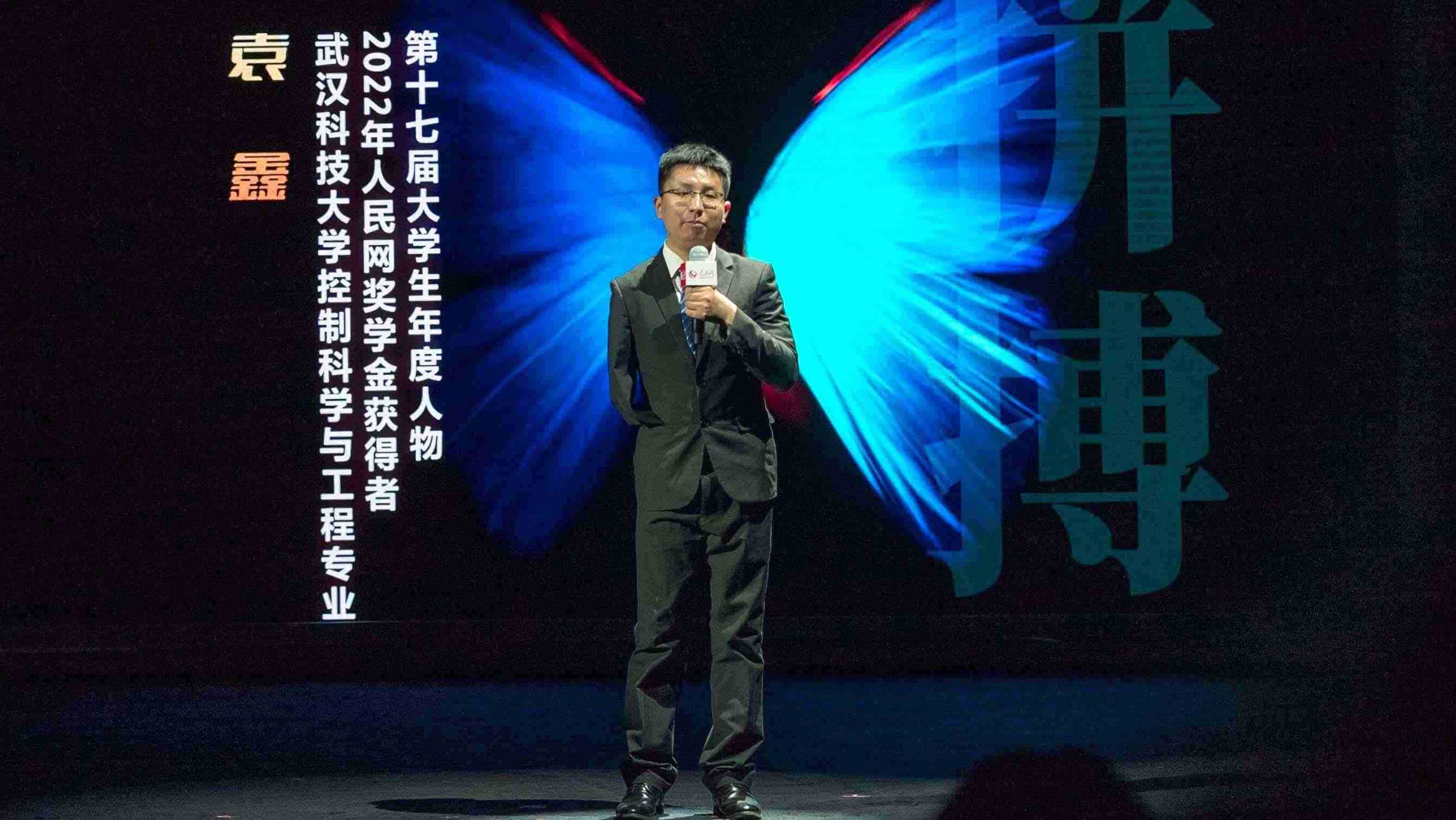 第十七屆大學(xué)生年度人物、2022年度人民網(wǎng)獎學(xué)金一等獎獲得者武漢科技大學(xué)控制科學(xué)與工程專業(yè)博士生袁鑫分享自己的故事。實習(xí)生韓華良 攝