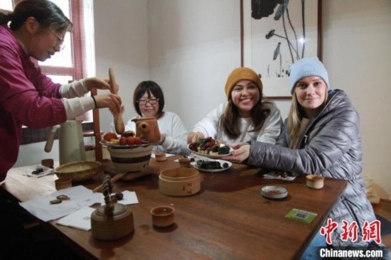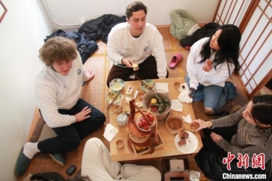 美國高校學(xué)生在山東青島體驗圍爐煮茶感受中國傳統(tǒng)文化