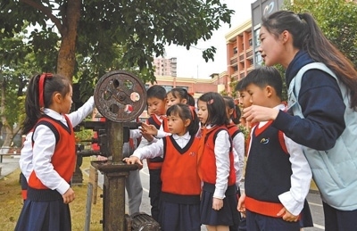 2022年3月,九龍坡區(qū)教委印發(fā)《關于推進中小學集團化辦學的意見》,謝家灣金茂小學成為謝家灣教育集團一體化辦學成員校。謝家灣金茂小學的前身是重慶建設工業(yè)(集團)有限公司子弟學校,約1/3的教師曾是工廠職工?!盎趯W校情況,我們強調(diào)培養(yǎng)學生養(yǎng)成熱愛勞動的習慣,形成陽光心態(tài)?!敝x家灣金茂小學黨總支書記楊永財指著校園內(nèi)擺放的老舊機床說,“重慶建設工業(yè)(集團)有限公司發(fā)展歷史厚重,學校積極挖掘紅色資源,給孩子們講好革命歷史,上好思政課。”