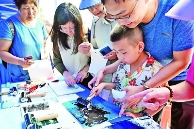 4月24日是“中國航天日”,海南文昌舉辦“氣象航天手牽手”系列科普活動(dòng),用各種趣味實(shí)驗(yàn)和游戲讓觀眾了解航天知識(shí)。圖為小朋友和家長在文昌航天科普中心制作航天主題版畫。新華社記者 郭程攝