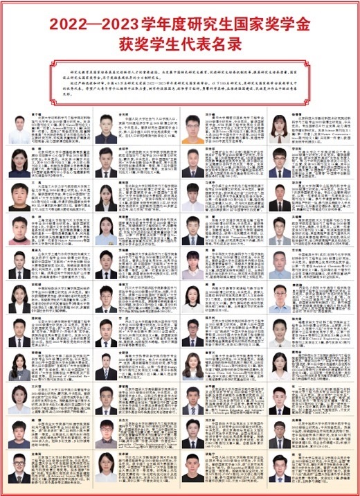 經(jīng)過嚴(yán)格選拔和評(píng)審,全國4.5萬名研究生榮獲2022—2023學(xué)年度研究生國家獎(jiǎng)學(xué)金。以下100名研究生,是研究生國家獎(jiǎng)學(xué)金獲獎(jiǎng)學(xué)生中的優(yōu)秀代表。希望廣大青年學(xué)子從榜樣中汲取力量,樹牢科技報(bào)國志,刻苦學(xué)習(xí)鉆研,勇攀科學(xué)高峰,在推進(jìn)強(qiáng)國建設(shè)、民族復(fù)興偉業(yè)中綻放青春光彩。