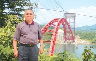 由鄭皆連指導(dǎo)建造的安徽黃山太平湖大橋跨徑達(dá)330米。圖為鄭皆連在施工現(xiàn)場。