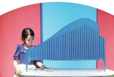科普教育山東省濰坊市高密市科技館內,小朋友在體驗音樂科普設備。李海濤攝(新華社發(fā))
