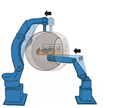 新型運動模擬器由兩個工業(yè)機(jī)械臂構(gòu)成。圖片來源:以色列巴伊蘭大學(xué)