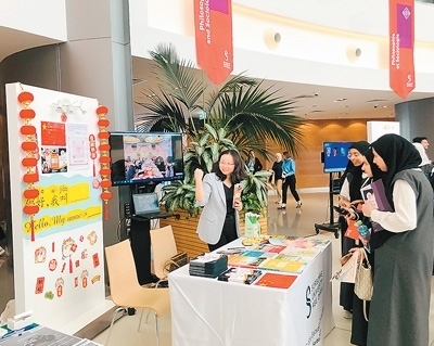 | 今年2月,張翠翠(左)參加索邦大學(xué)阿布扎比校區(qū)的開(kāi)放日活動(dòng)。(本文配圖由中國(guó)國(guó)際中文教育基金會(huì)提供) |