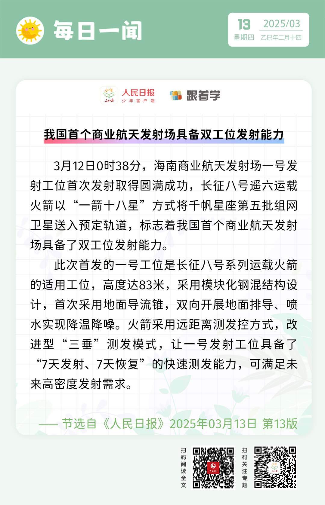 每日一聞丨我國首個商業(yè)航天發(fā)射場具備雙工位發(fā)射能力