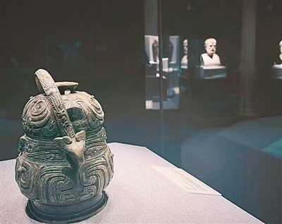 她的這番話讓我回想起開展當(dāng)天的凌晨。我站在展廳中央,環(huán)顧四下,看著那些跨越山海而來的文物和我們院藏文物一起,在燈下泛著溫潤的光,像是散落在時(shí)間長河里的星辰。那一刻,我覺得自己是個(gè)幸運(yùn)的拾星者,得以用展線作銀梭將它們串聯(lián)成新的星圖——這星圖里有雅典娜的榮光,也有西王母的“神性”;有陶繪酒罐的多彩,也有青銅酒器的厚重。不同文明的星光交匯于一方展廳間,文物雖不會說話,但它們的存在本身就是擲地有聲的宣言——文明的故事從來不是孤立的敘事,文明更從無高下之分,雖有山海之隔,仍可同頻共振。