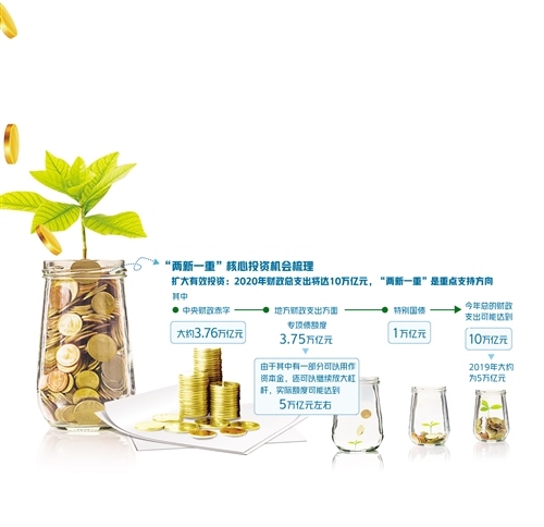 為重點支持既促消費惠民生又調(diào)結(jié)構增后勁的“兩新一重”建設,根據(jù)《政府工作報告》,今年特別安排地方政府專項債券3.75萬億元,比2019年有所增加;另有抗疫特別國債1萬億元,資金用途共涉及6個領域,其中有部分也指向“兩新一重”建設領域。